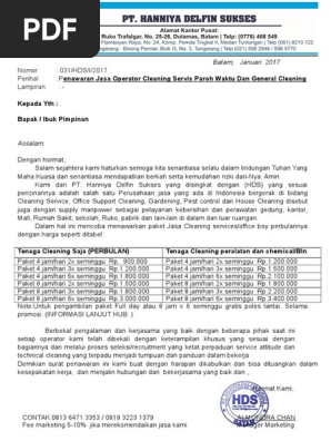 Demikianlah contoh surat penawaran harga, jasa cleaning service.
