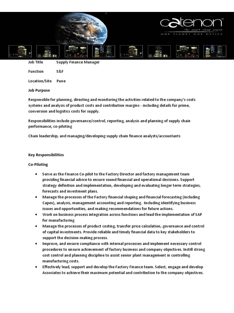 They are the root of all major business decisions and their role is crucial to the success of any organization. The business manager reports directly to the department head of the business, and closely monitors the efficiency of business operations. Hiring business operations manager job description post this business operations manager job description job ad to 18+ free job boards with one submission. The manager is an employee who is responsible for planning, directing, and overseeing the operations and fiscal health of a business unit, division, department, or operating unit within an organization. They are accountable to meet the financial needs of the small business customer in their portfolio. The role of a business manager is to supervise and lead a company's operations and employees. A finance manager distributes the financial resources of a company, is responsible for the budget planning, and supports the executive management team by offering insights and financial advice that will allow them to make the best business decisions for the company. Data analyst job profile and description a finance data analyst maintains a high job profile in today's world of finance and business. Small business managers are responsible for the supervision of employees, marketing, customer service and paperwork of smaller organisations across a variety of industries. If you are a job seeker looking for a finance manager position, use our sample job description below to see what job skills and experiences employers are seeking. Top duties and qualifications a finance manager is responsible for managing the financial health of an organization in order to promote success and growth while maintaining legal financial practices. Accounting managers generally have several direct reports and work to allocate tasks evenly across the team. They manage employees, supervise work, and ensure the company policies are met.